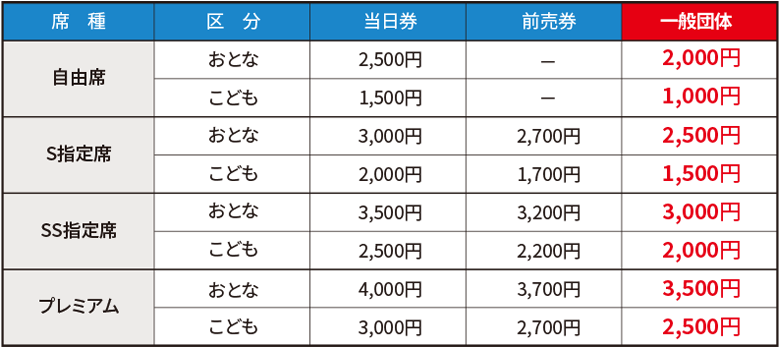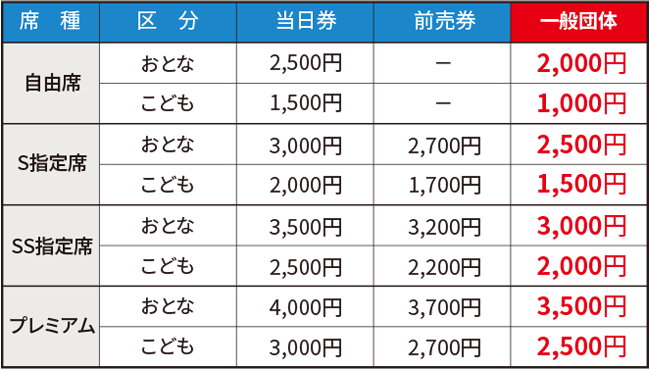 団体料金表(一般団体様)